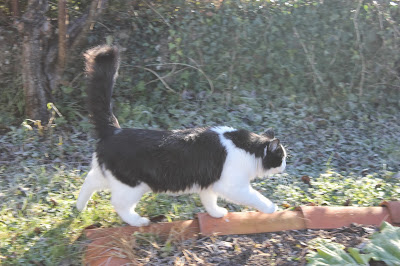Several cats belonging to the quartier like to check out our garden. One in particular is a real sweetheart. Thinking that it was a female, I named it Esme. When I found out that it is a male, The Calm One suggested Elmo. He is a fabulous, long-haired, black-and-white cat.